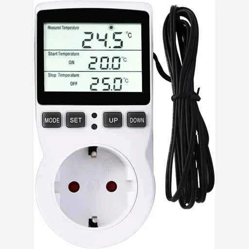 سوکت ترموستات کنترلکننده دما یک ترموستات دیجیتال پریزی کاربردی و دقیق است که به شما امکان میدهد انواع دستگاههای گرمایشی و سرمایشی را بهصورت خودکار مدیریت کنید. این محصول با داشتن سنسور دمای خارجی، دمای محیط را بهصورت لحظهای اندازهگیری کرده و بر اساس دمای تنظیمشده، دستگاه متصل را روشن یا خاموش میکند. اگر به دنبال یک کنترلکننده دما هوشمند و اقتصادی برای گلخانه، آکواریوم، جوجهکشی، اتاق سرور یا سیستمهای گرمایشی هستید، این سوکت ترموستات گزینهای ایدهآل است.