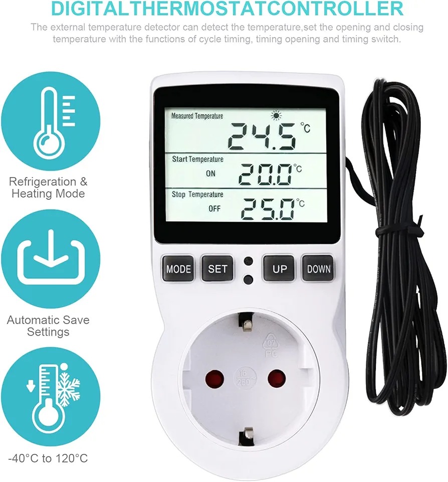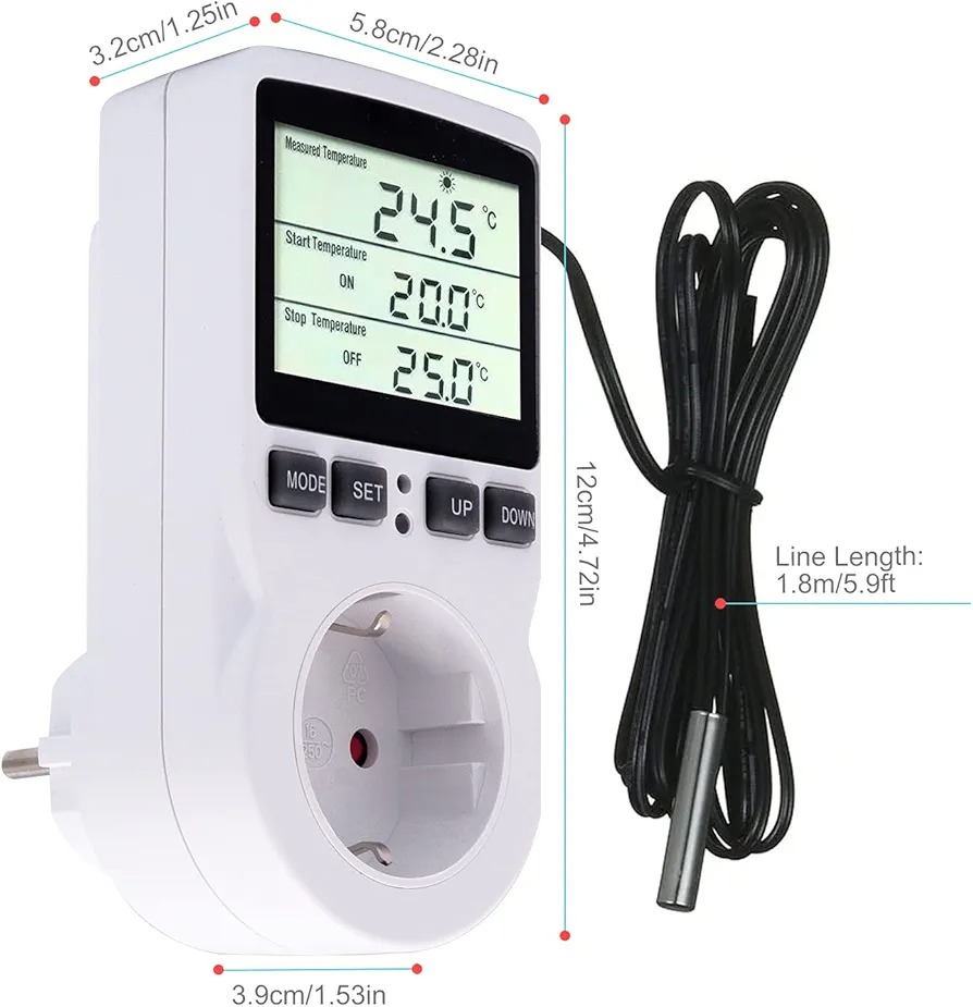 سوکت ترموستات کنترلکننده دما یک ترموستات دیجیتال پریزی کاربردی و دقیق است که به شما امکان میدهد انواع دستگاههای گرمایشی و سرمایشی را بهصورت خودکار مدیریت کنید. این محصول با داشتن سنسور دمای خارجی، دمای محیط را بهصورت لحظهای اندازهگیری کرده و بر اساس دمای تنظیمشده، دستگاه متصل را روشن یا خاموش میکند. اگر به دنبال یک کنترلکننده دما هوشمند و اقتصادی برای گلخانه، آکواریوم، جوجهکشی، اتاق سرور یا سیستمهای گرمایشی هستید، این سوکت ترموستات گزینهای ایدهآل است.
