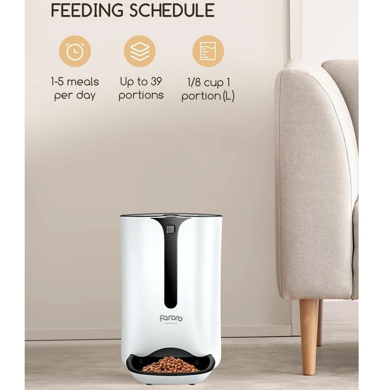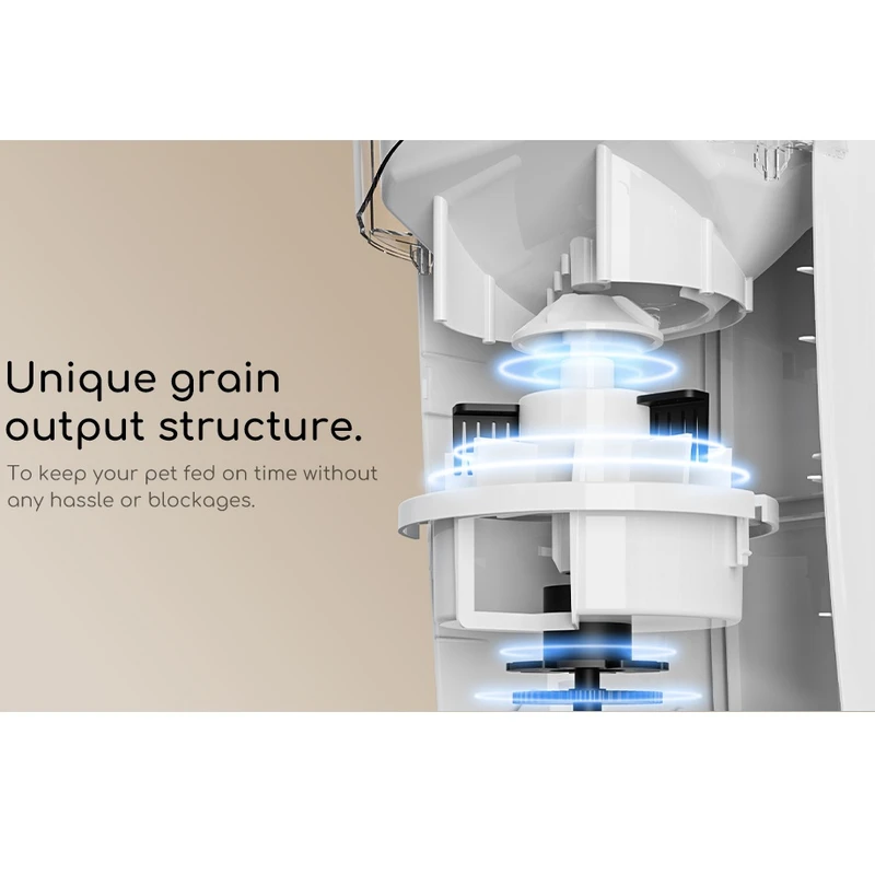 این دستگاه با مخزن جادار (حدود ۷ لیتر) مناسب استفاده چند روزه بوده و برای خانوادههایی که ساعات کاری طولانی دارند یا سفرهای کوتاه میروند بسیار ایدهآل است. شما میتوانید چندین وعده در روز تنظیم کنید و مقدار هر وعده را بهصورت دقیق مشخص نمایید؛ این ویژگی نقش مهمی در کنترل وزن، جلوگیری از پرخوری و حفظ سلامت گربه یا سگ دارد.