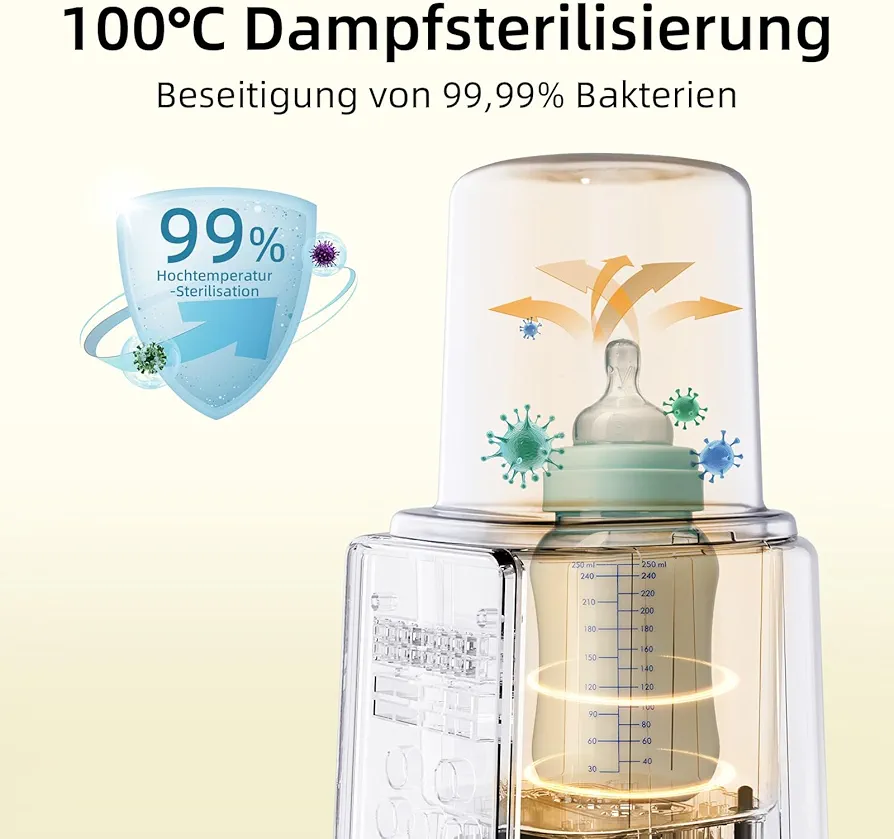 Bottle Warmer NNQ012 مجهز به چیپ هوشمند تنظیم دما است که به شما اجازه میدهد دمای مناسب (معمولاً بین 37 تا 55 درجه سانتیگراد) را انتخاب کنید. این ویژگی باعث میشود شیر نوزاد دقیقاً در دمای استاندارد بدن گرم شود و خطر سوختن دهان نوزاد به صفر برسد. بدنه دستگاه از مواد ایمن و مقاوم در برابر حرارت (Food Grade) ساخته شده و با اکثر شیشهشیرهای استاندارد سازگار است.