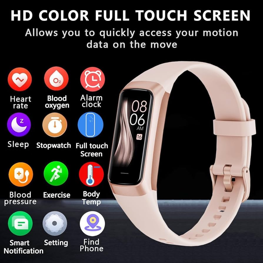 TROTY Fitness Tracker With Heart Rate/Blood Oxygen/Sleep Mon یک دستبند هوشمند سلامت و تناسب اندام تمامعیار است که با طراحی زیبا و عملکردی حرفهای، به شما کمک میکند سلامت و فعالیتهای روزانهتان را بهصورت هوشمندانه زیر نظر بگیرید. این فیتنس تراکر هوشمند با بیش از ۲۰ حالت ورزشی (sport modes) مناسب برای پیادهروی، دویدن، دوچرخهسواری، یوگا و سایر فعالیتهای ورزشی است و بهراحتی برای خانمها و آقایان قابل استفاده است. �