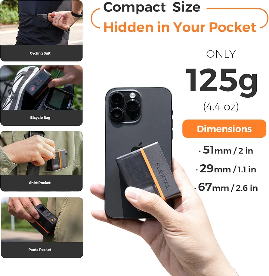 پمپ تایر FLEXTAILGEAR Mini Electric Bicycle Pump یک ابزار ضروری و کاربردی برای هر دوچرخهسوار است که به دنبال راحتی و سرعت در باد کردن تایرهای خود هستند. این پمپ جمعوجور و سبک، با قابلیت شارژ دوباره از طریق USB-C، همیشه آماده استفاده است و نیاز به باتریهای یکبار مصرف را از بین میبرد. با طراحی مدرن و کاربری ساده، میتواند تایرهای دوچرخههای جادهای، کوهستانی و حتی توپهای ورزشی را در عرض چند دقیقه باد کند.